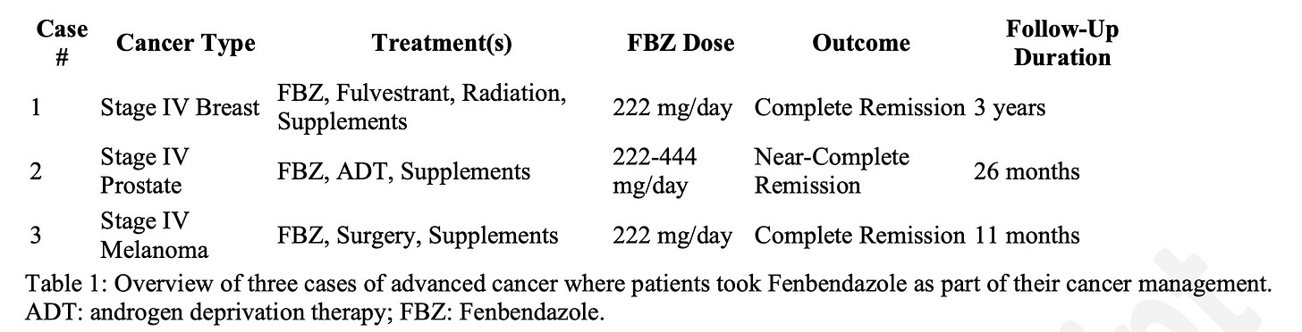 The following excerpted case report was published online last month. and yet again shows that inexpensive repurposed compounds like Fenbendazole and Ivermectin may cure cancer better than any legacy Medical-Industrial Complex “treatments.”