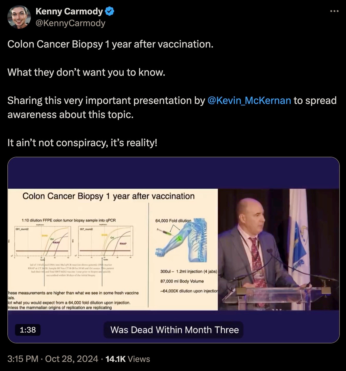 The video clip of Kevin McKernan providing absolutely indisputable proof that most of humanity has already been genetically modified, and are now walking VAIDS spike protein factories that will continue to drive the rapidly worsening turbo cancer epidemic: