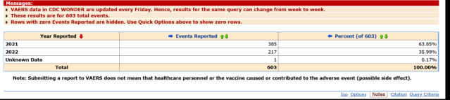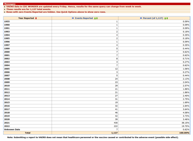 As you can see there was a huge increase in reports in 2021 and in 2022 so far, with the vast majority being attributed to the Covid-19 injections.