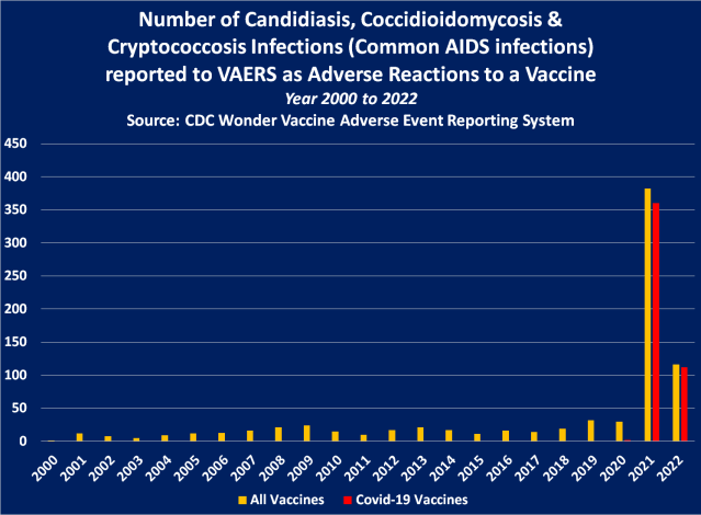 Are we really to believe that this is just an unfortunate coincidence? Or are we witnessing the American public report to the Centres for Disease Control that the Covid-19 injections are causing them to develop acquired immunodeficiency syndrome?