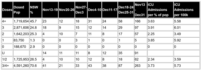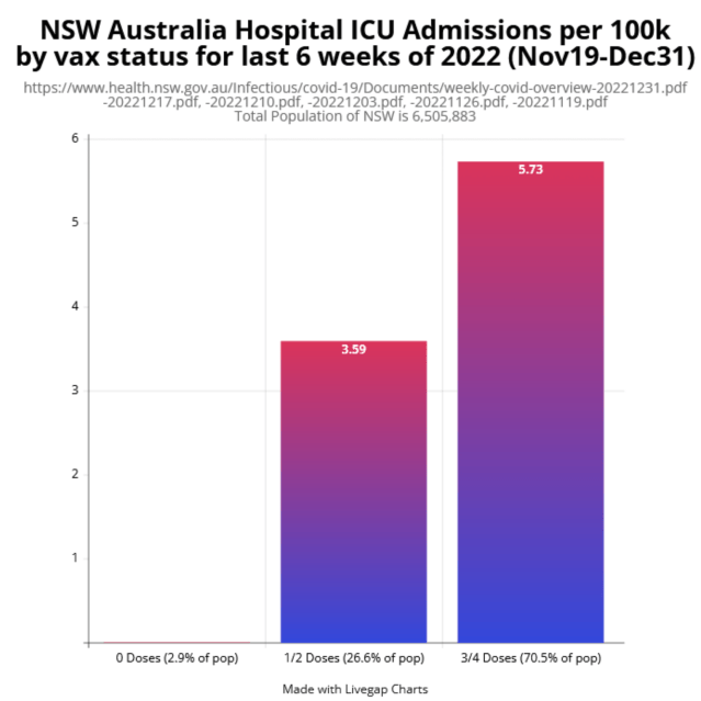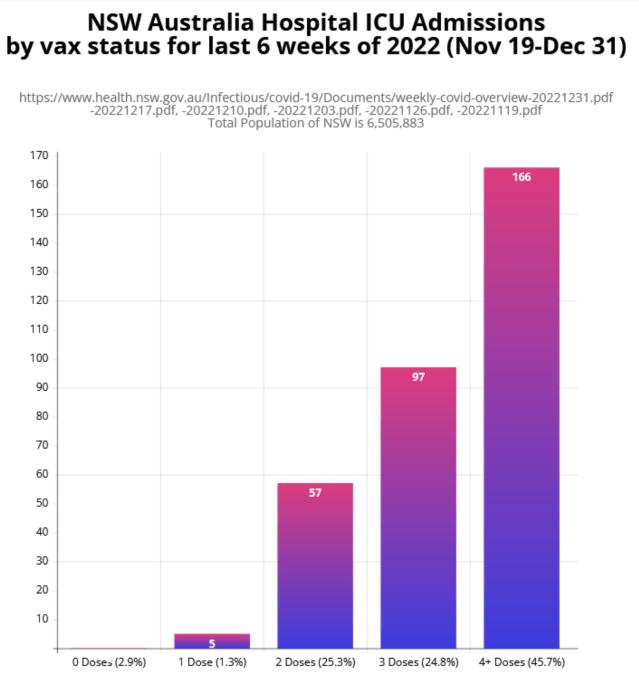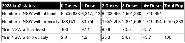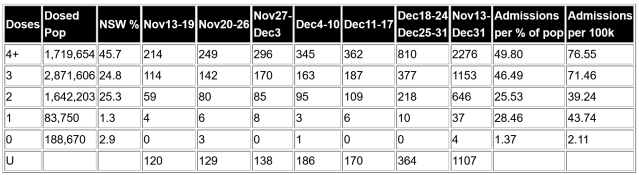 The population of NSW in Australia is 6½ million people. They are a highly vaccinated group. Looking at the Australian Government data for the last 6 weeks of 2022 we see that.
