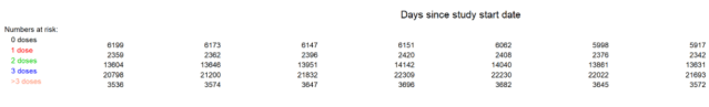 2. Those with 3 or 4 or more doses are 35x more likely to be admitted to hospital with Covid that those with no doses.