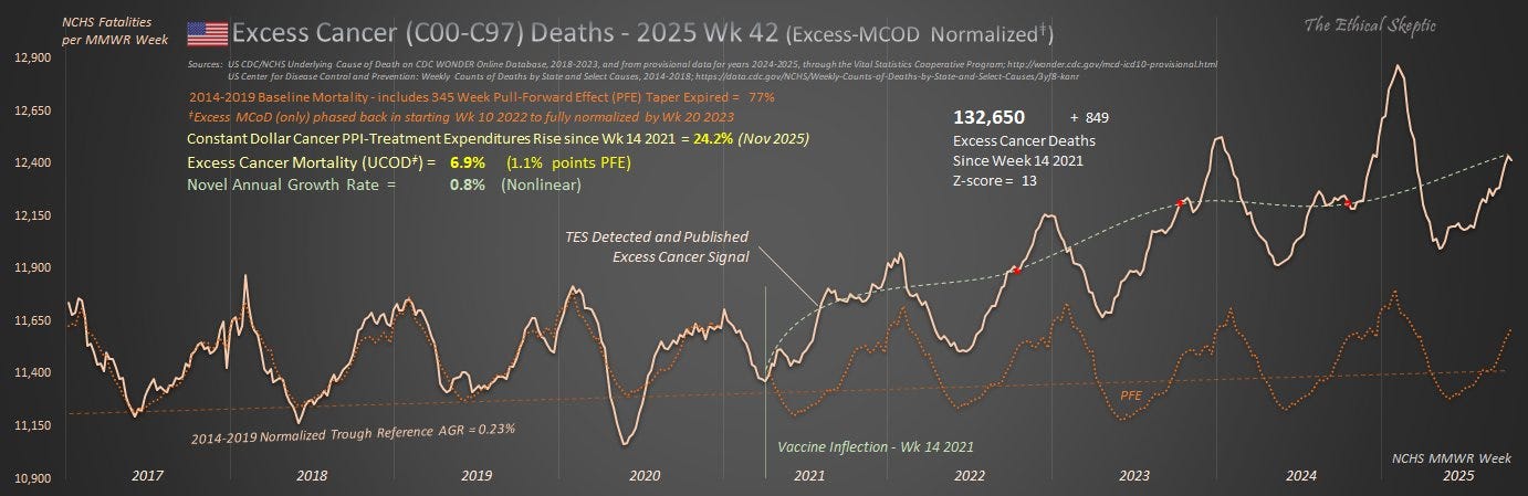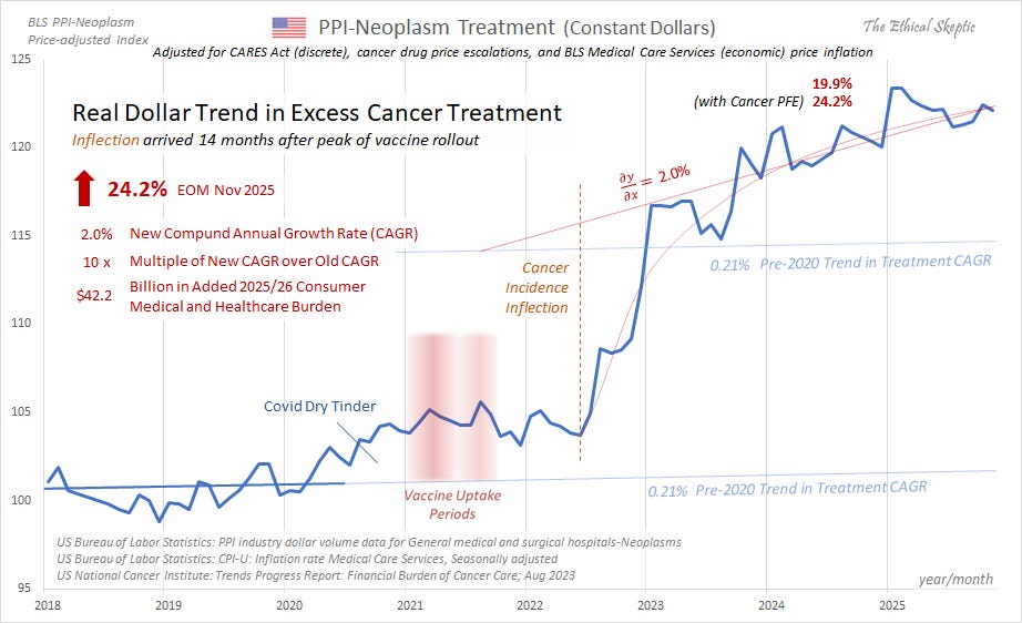 Across all major cancer-tracking indices - diagnosis rates, treatment expenditures, public and institutional attention, and mortality - a clear and consistent signal is observable. All four inflected in temporal concurrence following the introduction of mRNA vaccination.