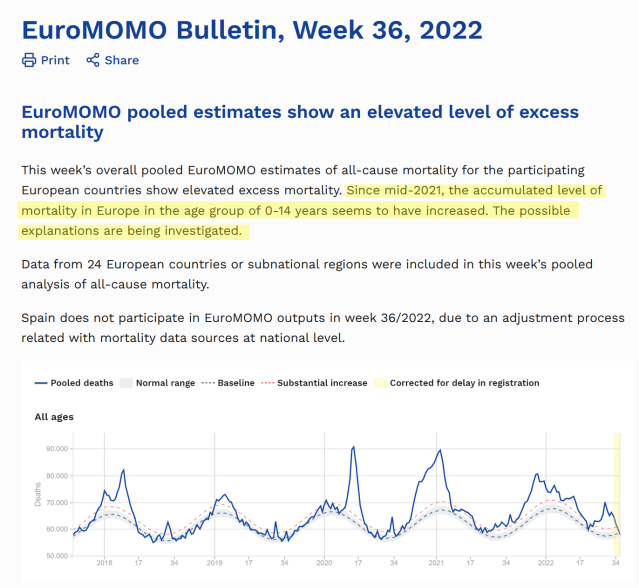 So we revisited the data and discover upon further investigation, that by the 18th of September, Europe had suffered a 755% increase in Excess Deaths among Children since EMA approved COVID Vaccine for Kids.