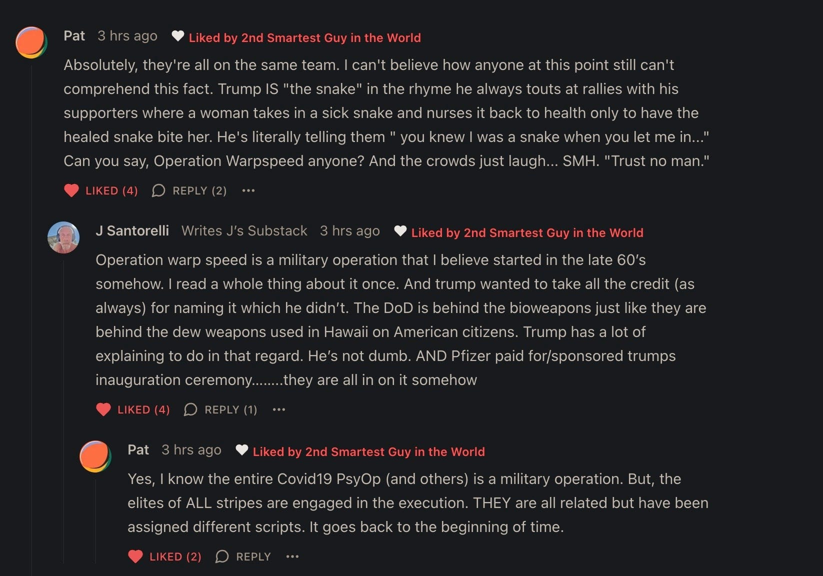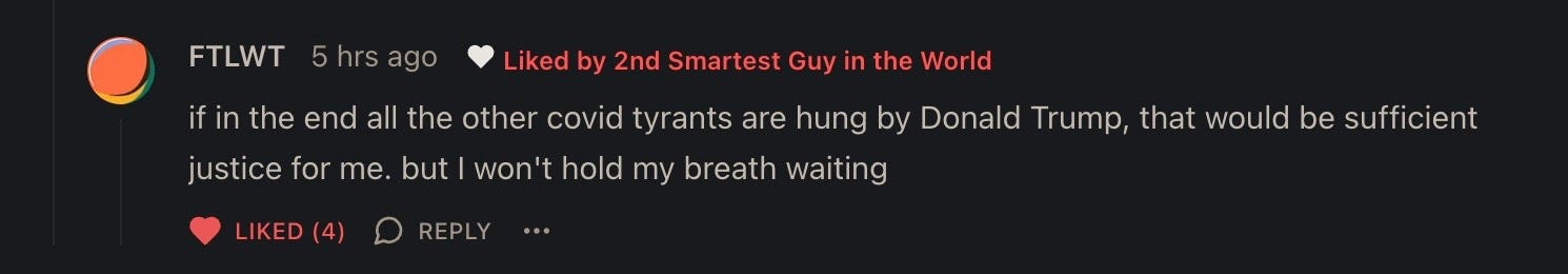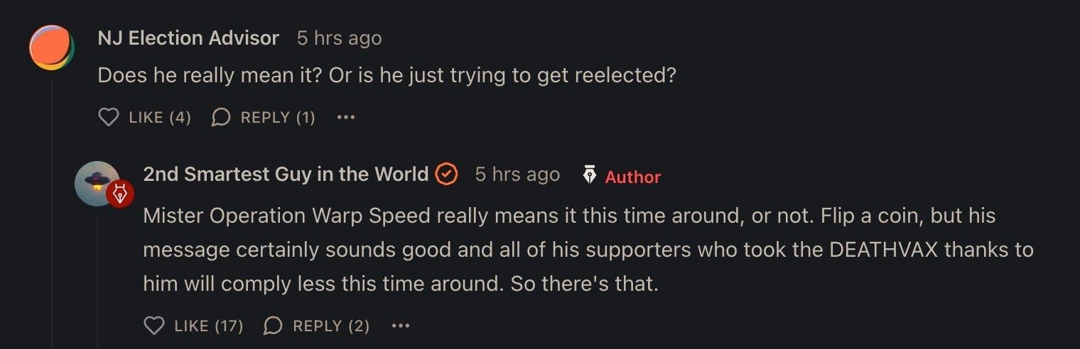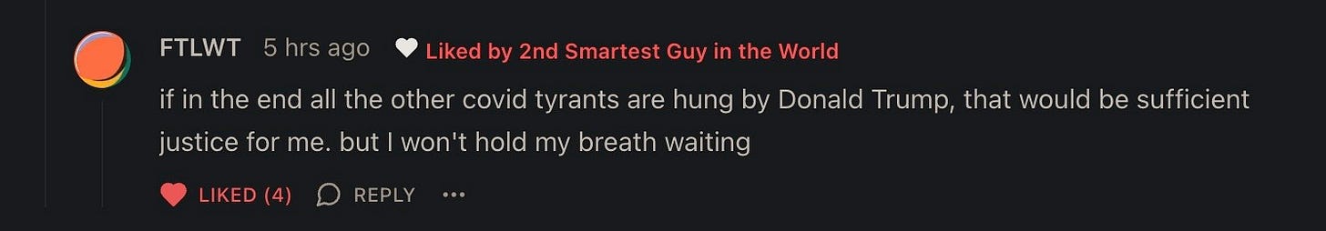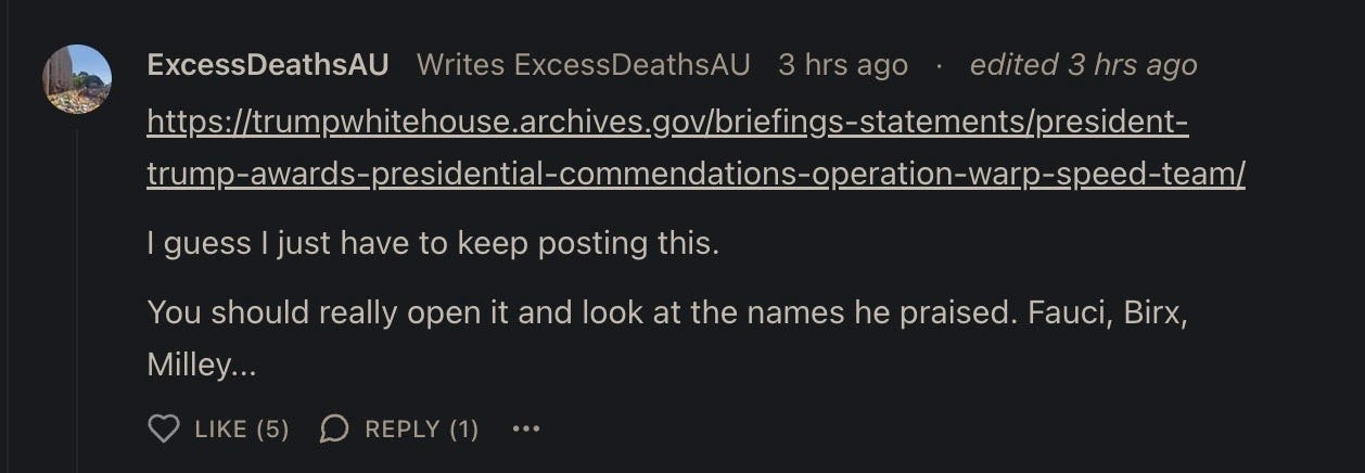 The biggest takeaway from the comments section was why Trump has refused to admit that his “beautiful” DEATHVAX™ was the single most disastrous democidal program in the history of mankind?