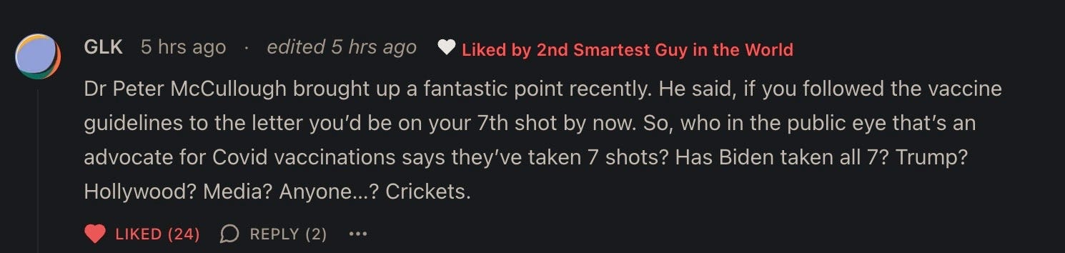 This Substack’s comments section was far more incisive than the article itself, so please don’t hold back, and keep the comments coming!