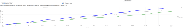 Figures for the number of individuals suffering from ovarian cancer show that the known trend in 2021 was significantly higher than 2020 and the 2017-2019 average.