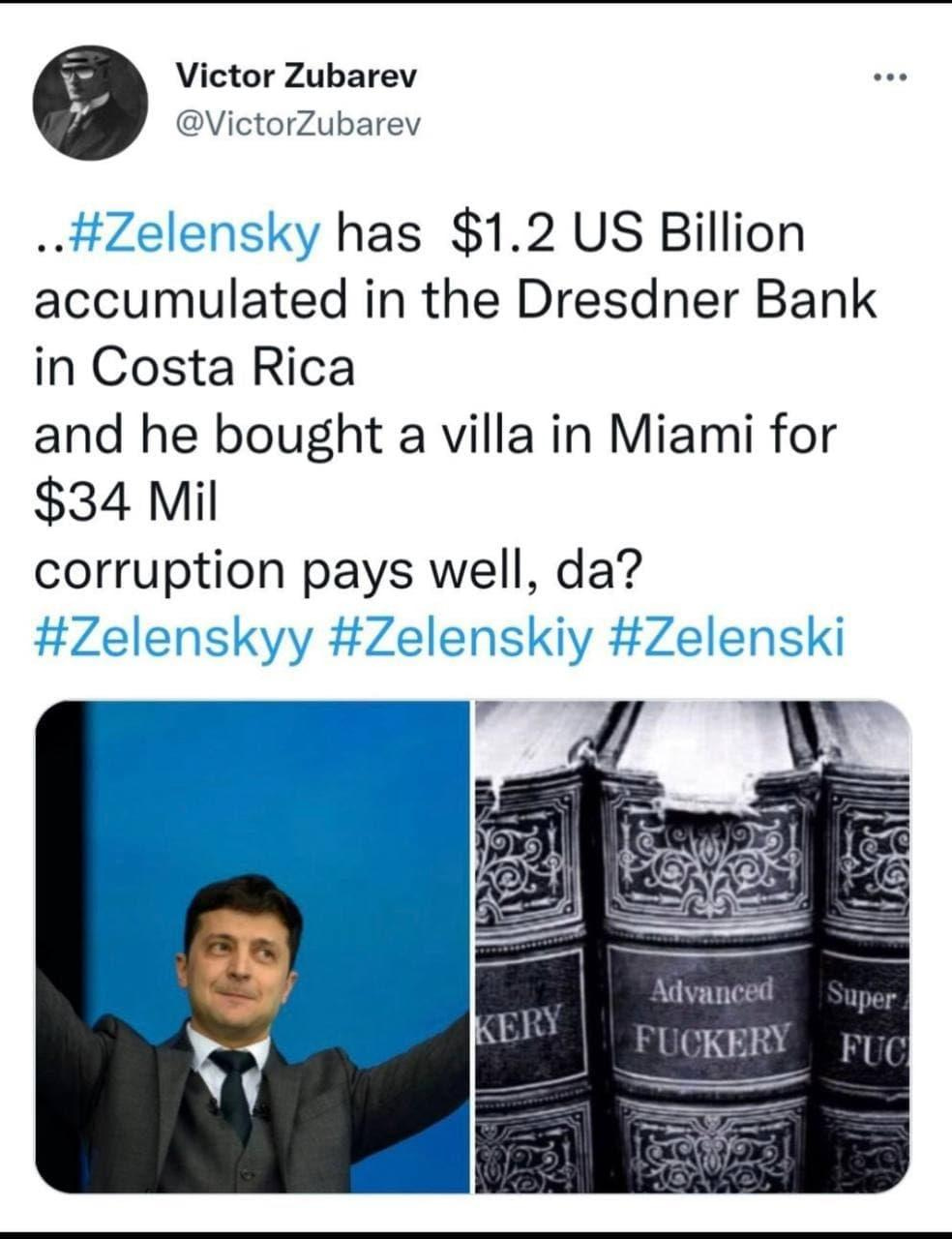 Who would have thought 3rd rate Eastern European comedians turned Cult puppets are top earners? Maybe he should start buying arms for his soldiers instead of begging foreign nations, and maybe since he’s such a diehard patriot, he can take up arms while he’s at it?