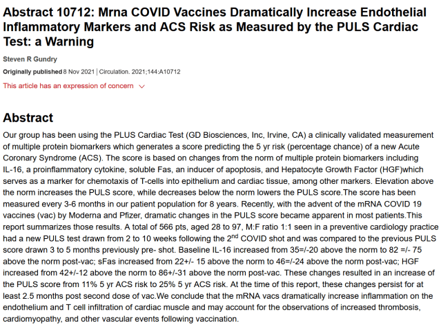 Well, a recent American Heart Association paper found that mRNA vaccines more than double the 5-year chance of suffering a heart attack, as measured by various inflammatory markers.