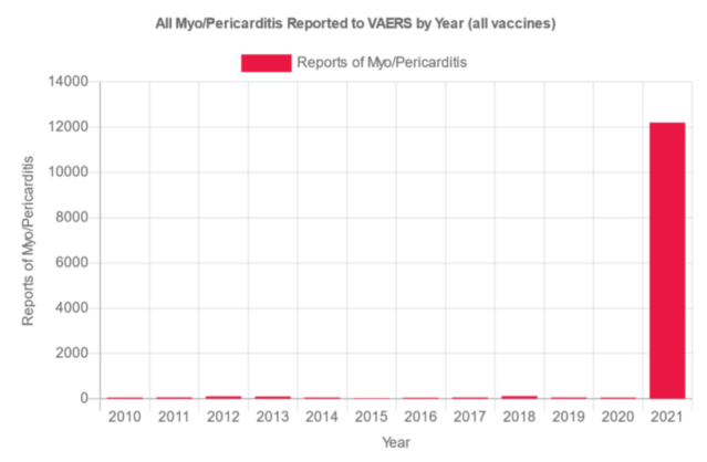 And just look at how many reports of myocarditis have been made to VAERS in 2021 alone compared to all other years.