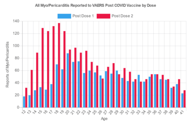 A closer look at VAERS data (US Vaccine dverse Event Reporting System) shows that heart damage is ubiquitous throughout the vaccinated population, and the damage is being diagnosed in multiple ways. Acute cardiac failure rates are now 475 times the normal baseline rate in VAERS. Tachycardia rates are 7,973 times the baseline rate. Acute myocardial infarction is 412 times the baseline rate. The rates of internal haemorrhage, peripheral artery thrombosis, coronary artery occlusion are all over 300 times the baseline rate.
