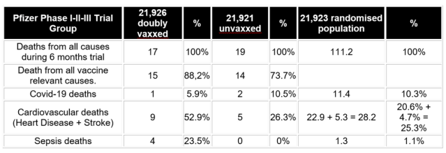 The Pfizer Phase I-II-III trails also found the cardiovascular death rate in the vaccinated group was twice as high as the rate in the unvaccinated group –