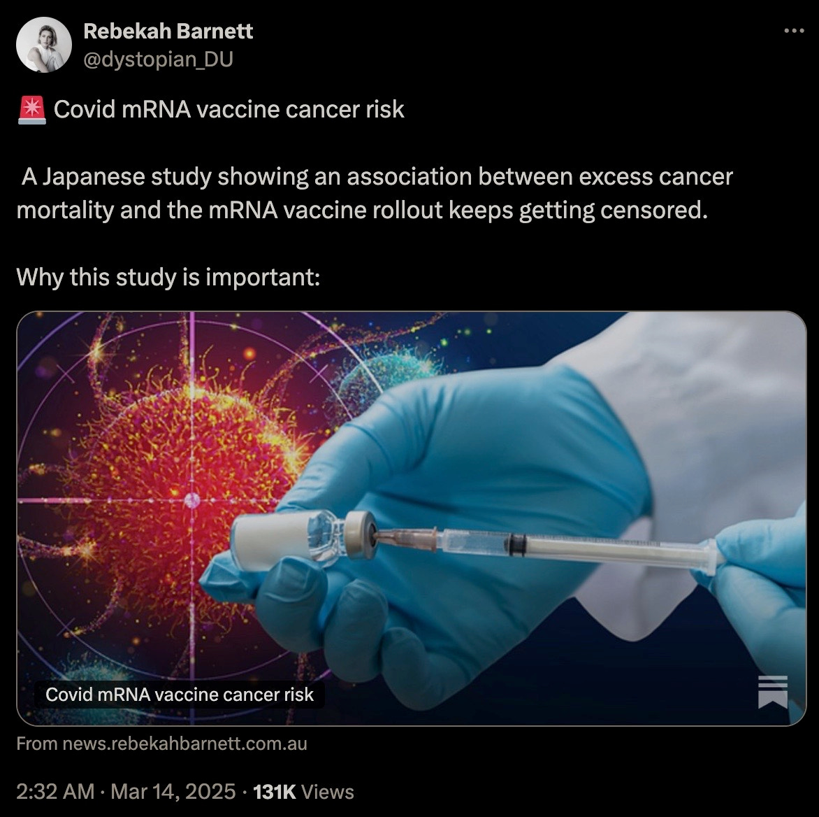 Covid mRNA "Vaccine" Cancer Risk: A Japanese Study Showing An Association Between Excess Cancer Mortality And The mRNA "Vaccine" Rollout Keeps Getting Censored