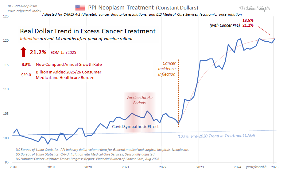 Back in the USA, what we are experiencing in terms of our burgeoning turbo cancer outbreak is the latest 21.2% increase in cancer care expenditures, which represents an additional rise of $38 billion in annual healthcare costs; to wit: