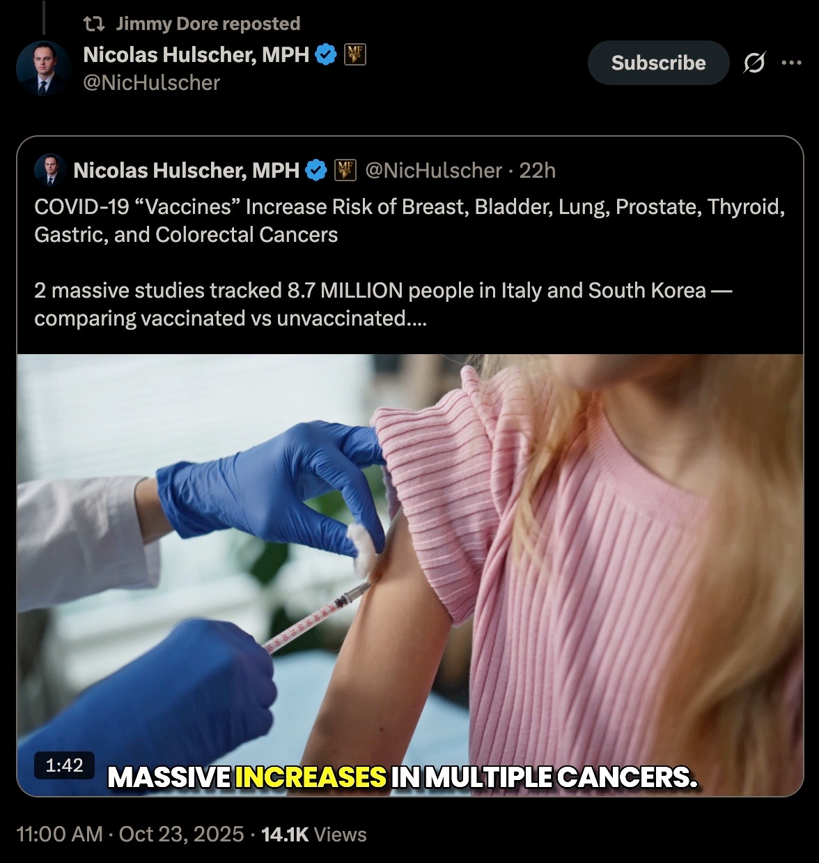 The great irony here is that Jimmy Dore is speaking with another former PSYOP-19 DEATHVAX™ peddler that has also recently done an about-face…