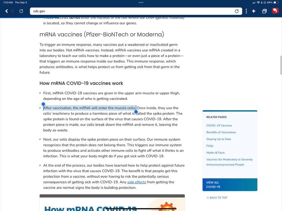 Screenshots below are from the FDA and CDC respectively. They show that the mRNA shots do enter your cells. They also state that and that the definition of a gene therapy is a product that inserts of genetic material into your cells. While I have been discussing this for several years now the mainstream media and corrupt government officials continue to suggest that these poisons are not gene therapy products.