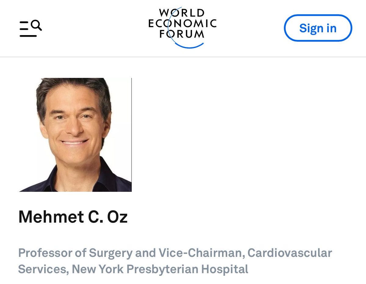 Not only is Oz a WEF member who pushed the scamdemic hard, he also supports transgender mutilation surgeries for children, and is all for microchipping humans.
