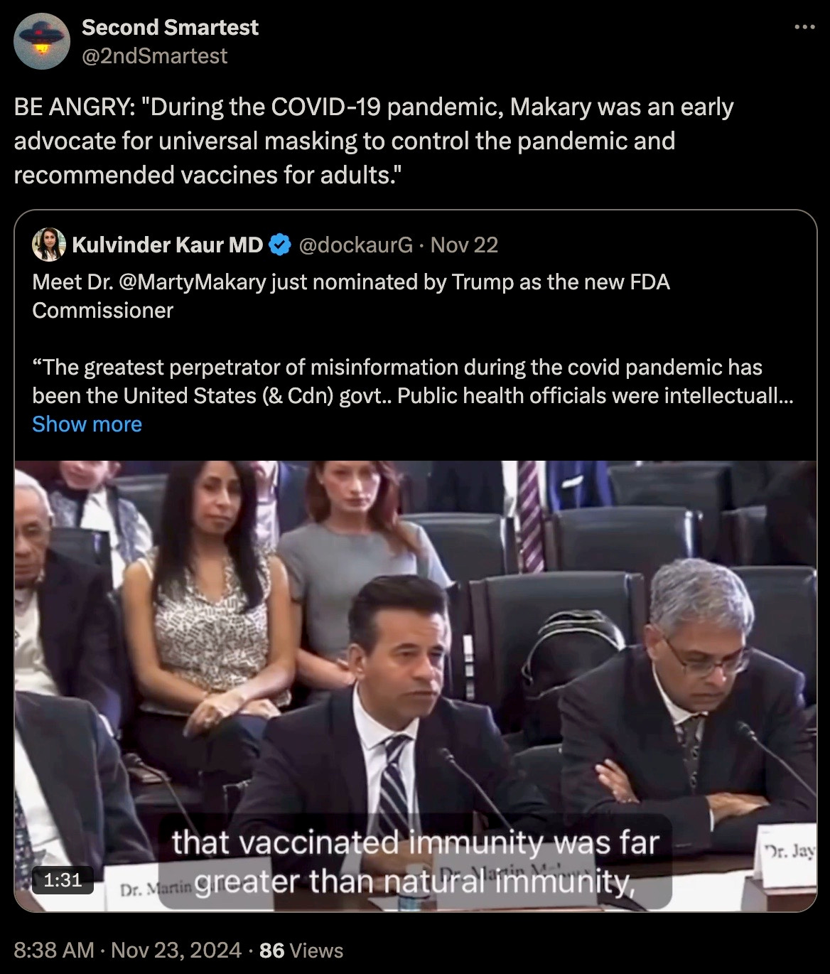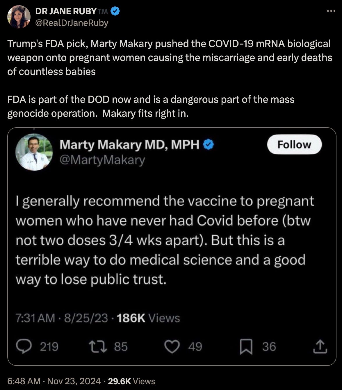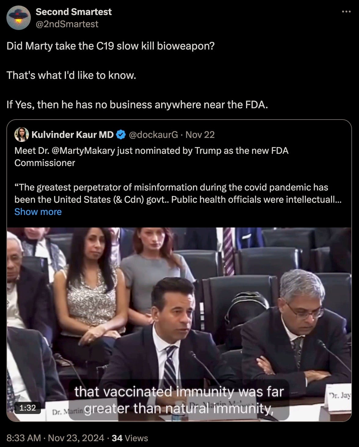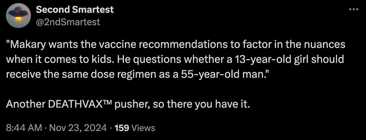 To reiterate, he has no business being anywhere near the FDA even if he did not subject himself to the DEATHVAX™.