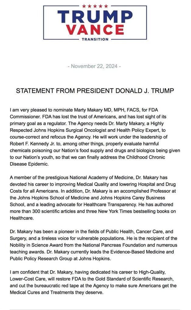 Next up is the FDA commissioner appointment which on the surface looks benign enough: