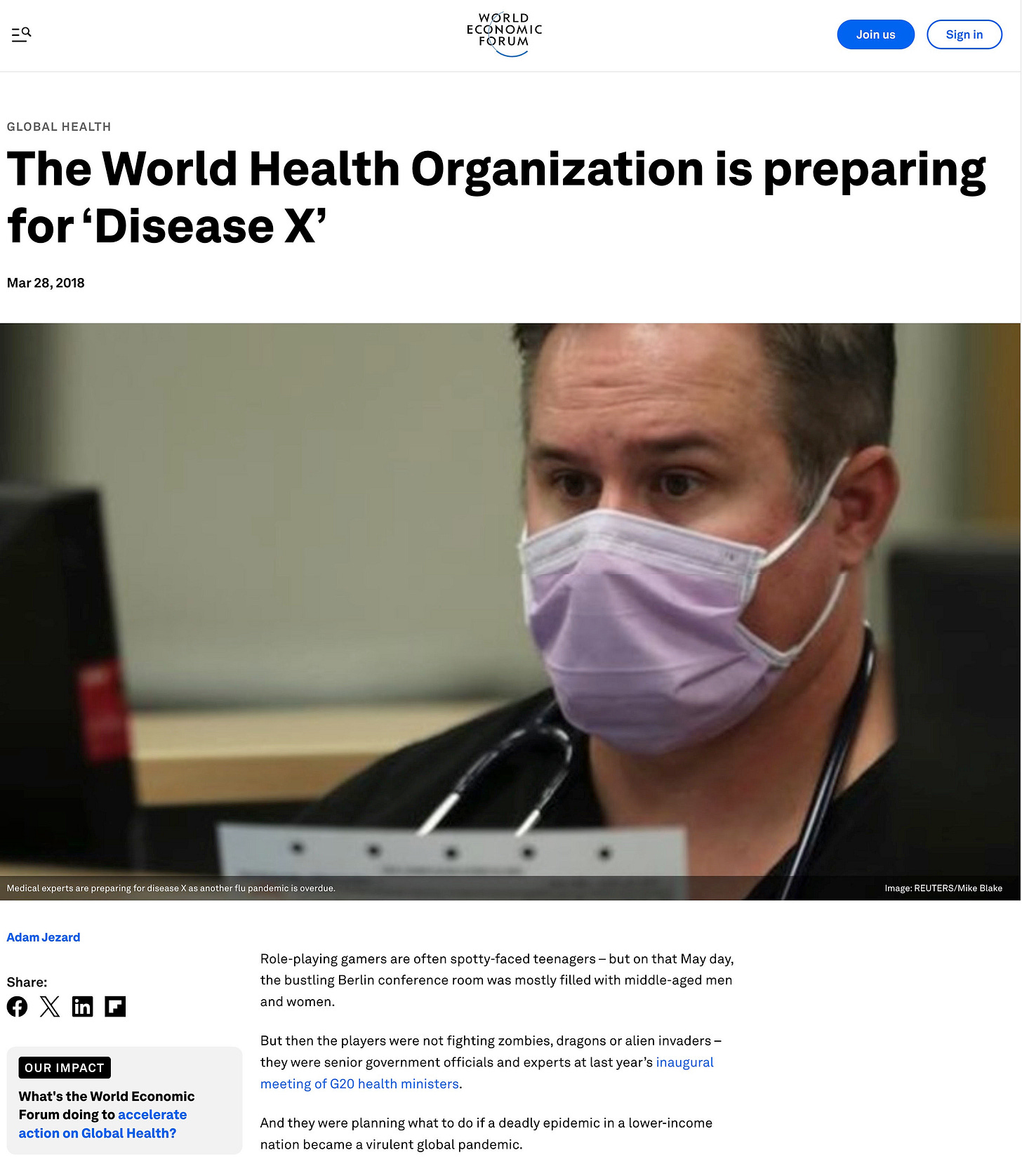 They always telegraph their plans for you, and Disease X will be their followup, irrespective of how it is ultimately branded for public fear porn consumption.
