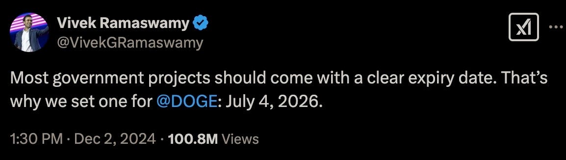 When Trump announced DOGE he said it was a temporary project to be wrapped up by the Summer of 2026, more specifically July 4th next year, the 250th anniversary of the United States.