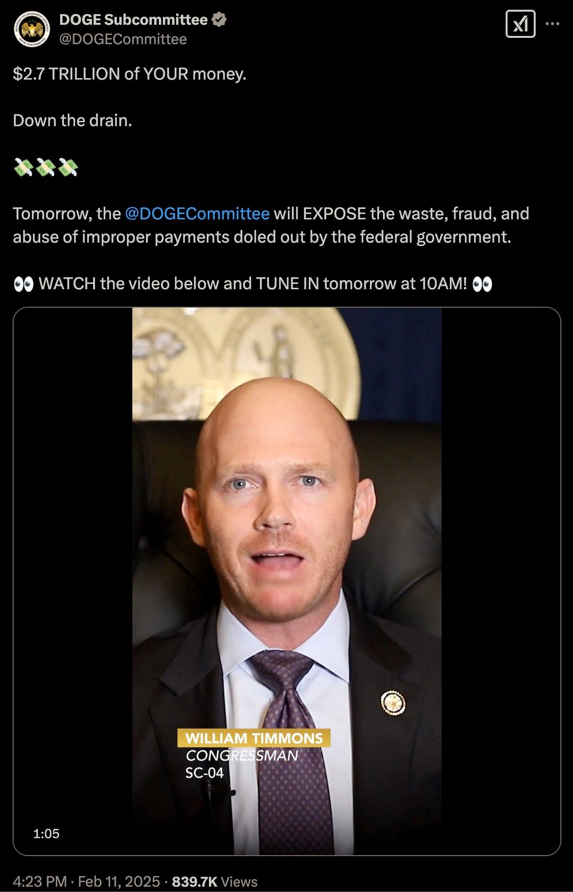 In an X post, DOGE notes that $4.7 trillion is unaccounted for, because the federal government did not record where the money was going.