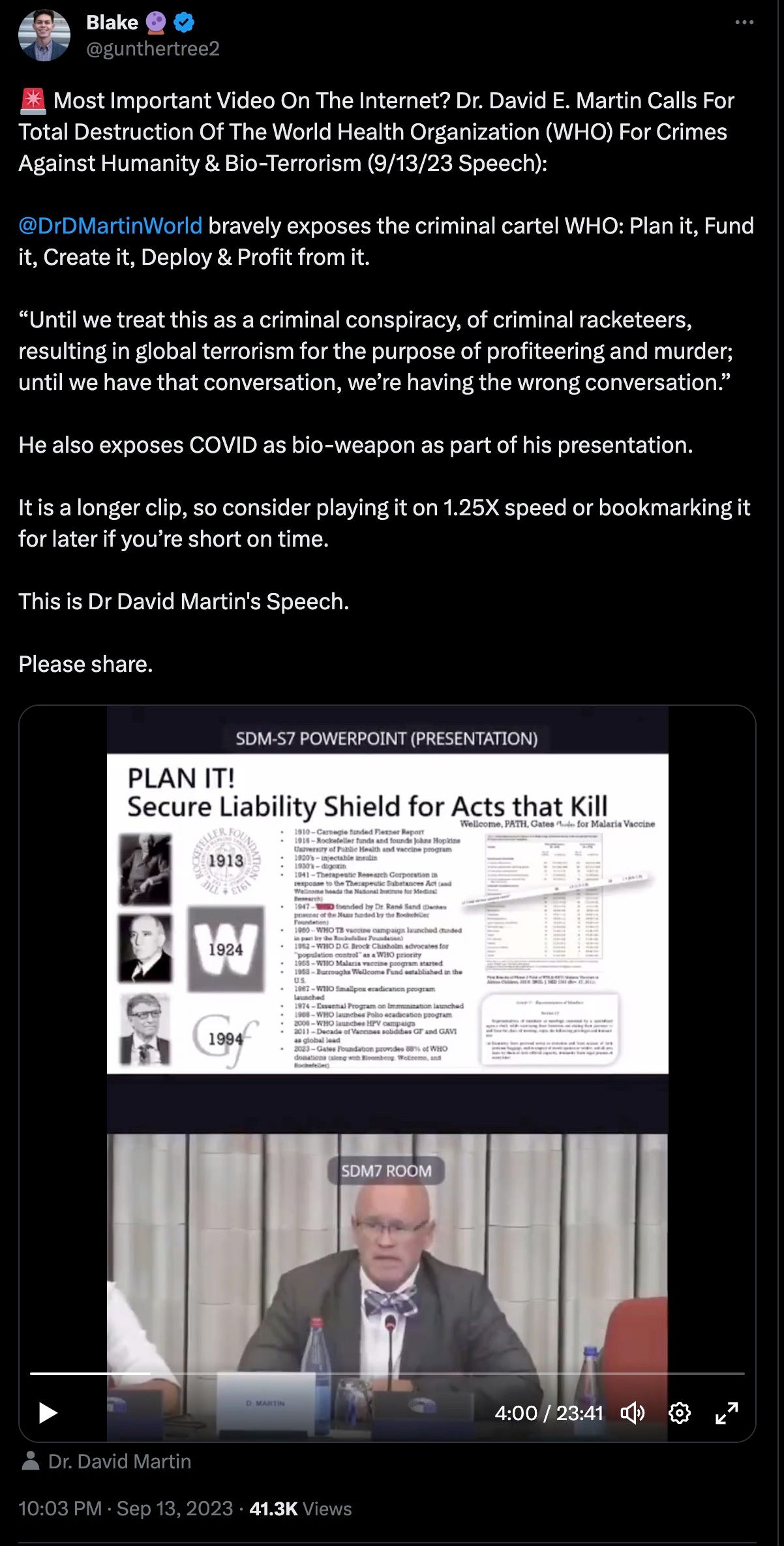 He outlined the WHO origins since its founding in 1947 by eugenicists hellbent on committing crimes against humanity, and that the Welcome Trust and the Gates “nonprofits” are today their partners-in-crime, murdering children in their “vaccine” trials over many decades en route to murdering large swaths of the global population.