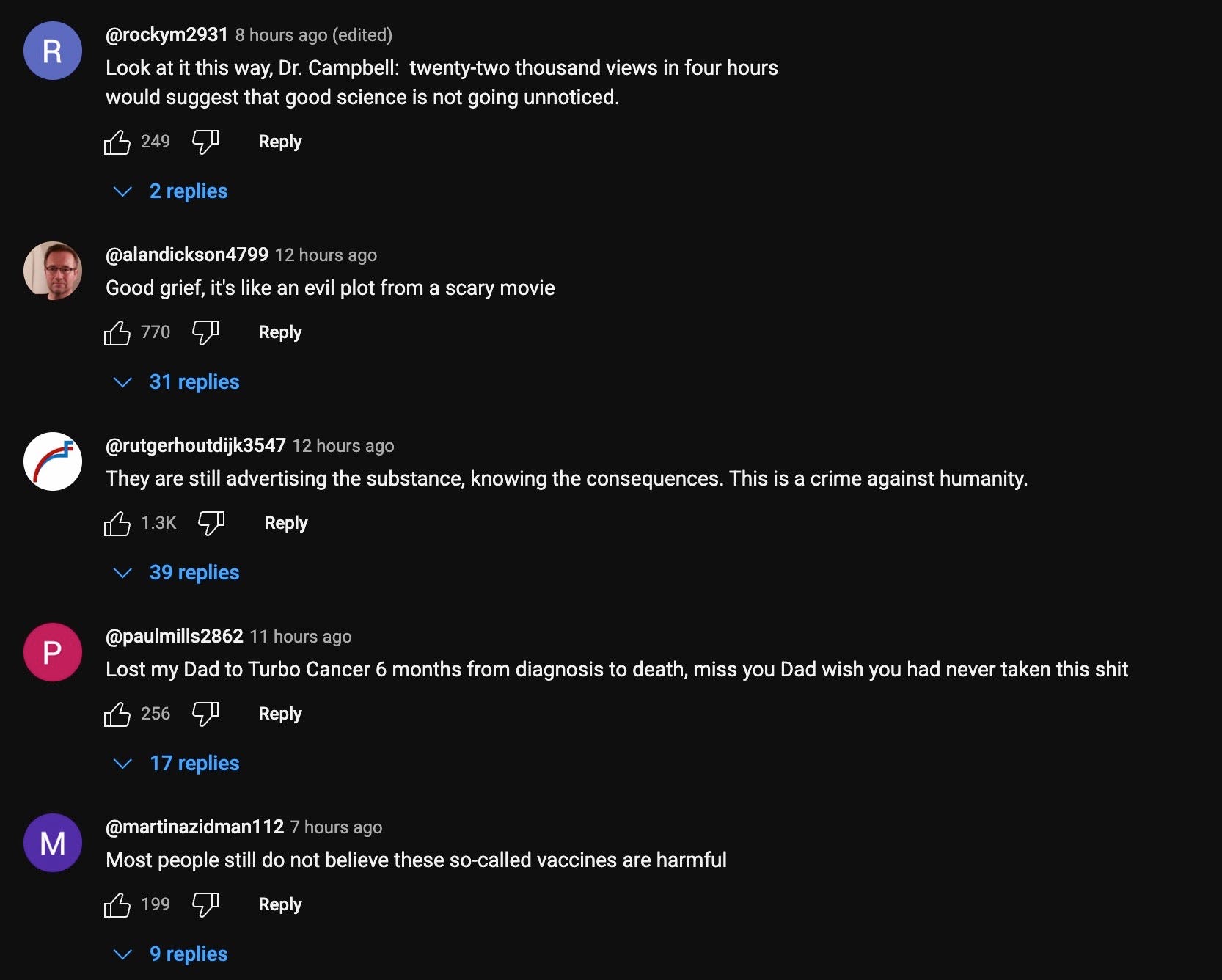And here are some of the most popular comments from Dr. Campbell’s latest YouTube presentation:
