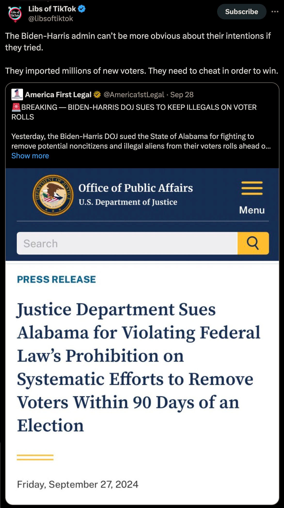 But it gets worse, far worse, because all of these illegals are imported not just to destroy what is left of America, but to also guarantee that only Democrats will ever be “voted” into power, thus ensuring that this communist takeover lasts in perpetuity; with “Biden’s” DoJ aiding and abetting in their unprecedented lawfare: