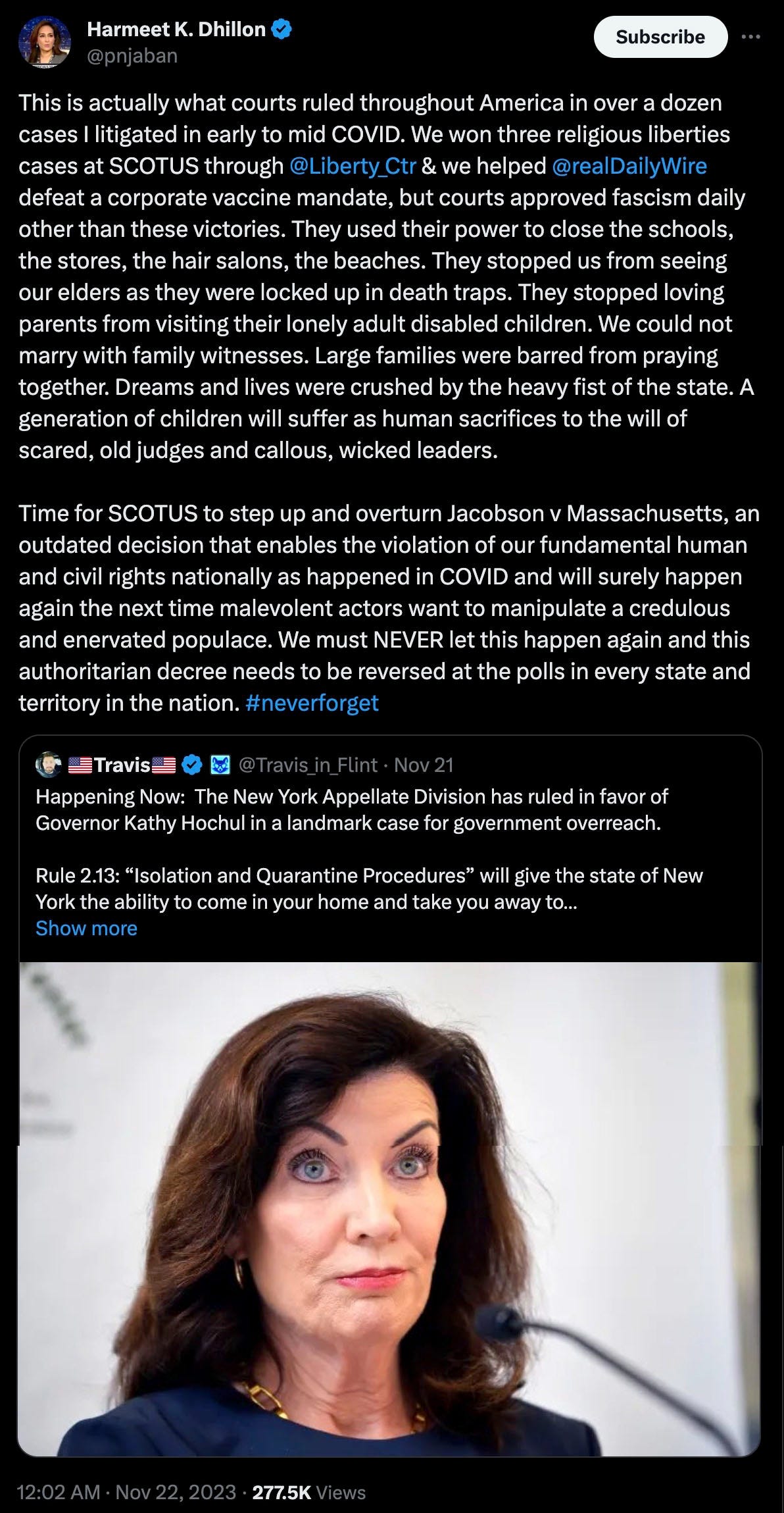 This Substack has been vehemently against the globalist sociopath puppet “Governor” Hochul since she was first illegitimately installed.