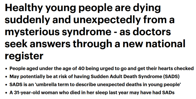 You’ve likely all seen the headlines this week on Doctors being baffled by an uptick in “Sudden Adult Death Syndrome” (SADS)?