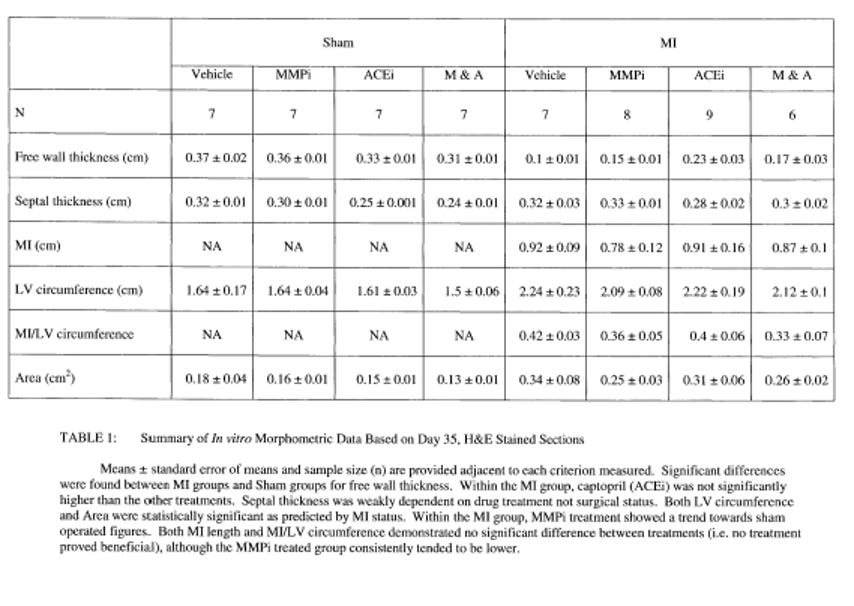 The combination of anti-inflammatory and anti-MMP compounds may be a particularly effective approach to the treatment of myocarditis. By targeting both inflammation, oxidative stress and MMP activity, these compounds may be able to more effectively prevent damage to the heart muscle and to promote healing. Below, the data demonstrates the inhibition of MMP activity reduces CHF parameters by about 50% compared to control and is as effective as the ‘gold standard’; an ace inhibitor.