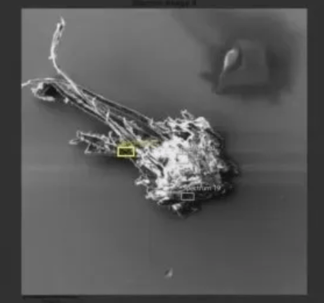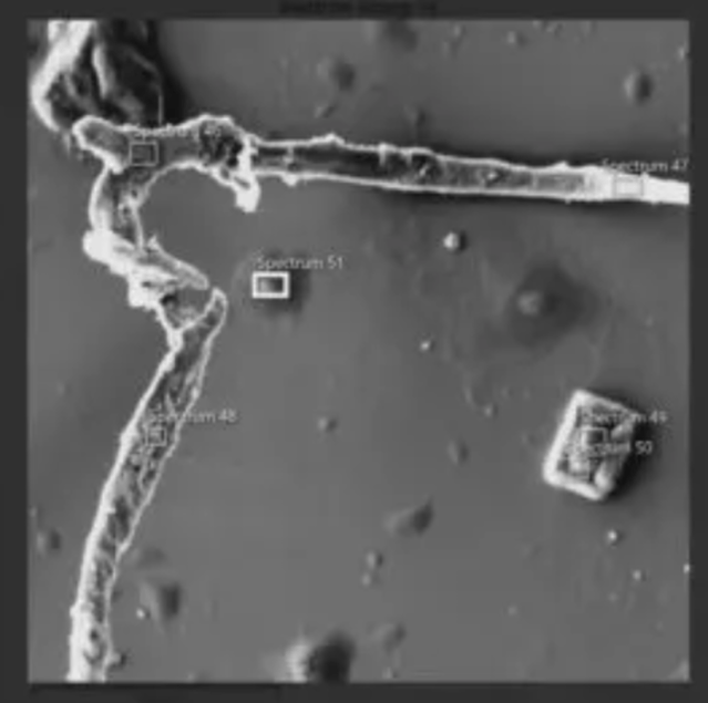 “This shape, this ball with the legs growing out of it, for some reason has aluminium in it. And I can say with certainty that this isn’t a mould spore or some other type of biological contamination, because the only thing in it is carbon, oxygen, and no signs of nitrogen, no signs of phosphorus, which would indicate something biological of origin. So, this thing that’s growing is non-biological.”
