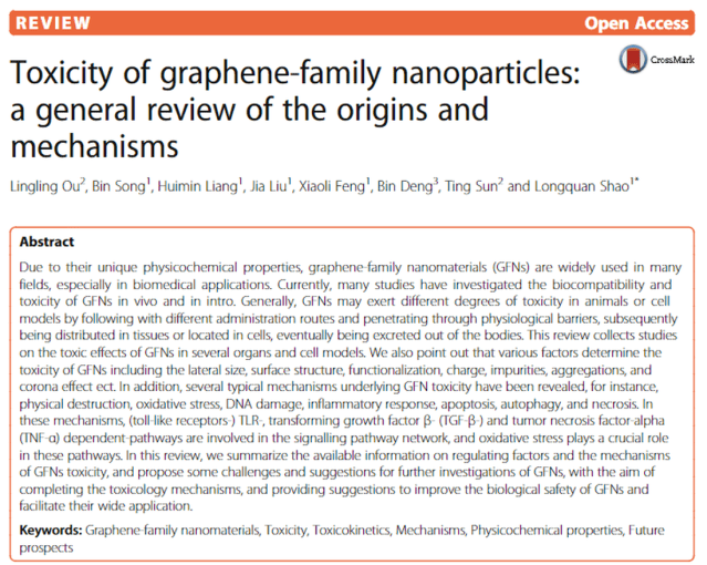 An Open Access review highlighting the toxicity of the graphene family nanoparticles can be viewed here.