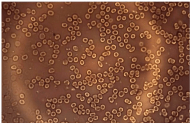 Below is an image of typical healthy red blood cells as seen with a microscope, what blood should look like. There is no coagulation or foreign objects in it.