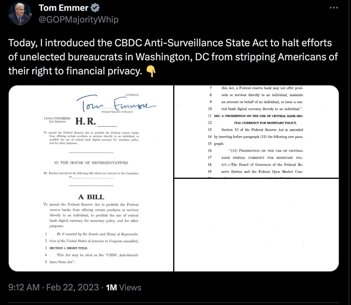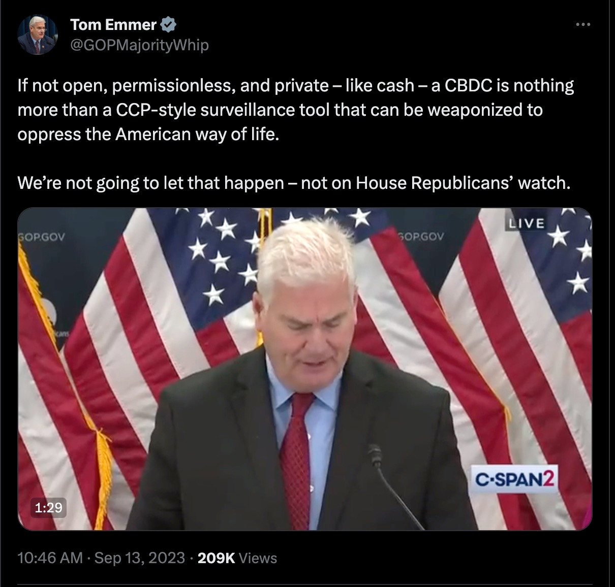 Of course, as per the above, Americans have no privacy when it comes to the scam that is the IRS. But at least Tom Emmer frames the CBDC correctly as a technocommunist oppression tool: