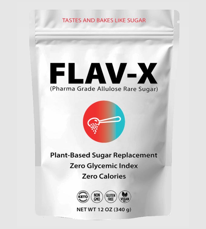 This Substack is proud to bring you a brand new product called FLAV-X, a pharmaceutical grade pure rare sugar that is truly a wonder compound.