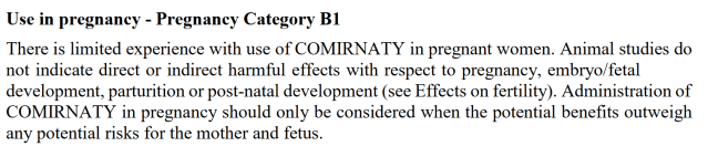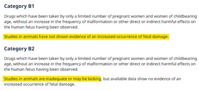 The Module 4 evaluator told Pfizer that ‘Pregnancy Category B2’ was considered appropriate and requested that they added the following line –
