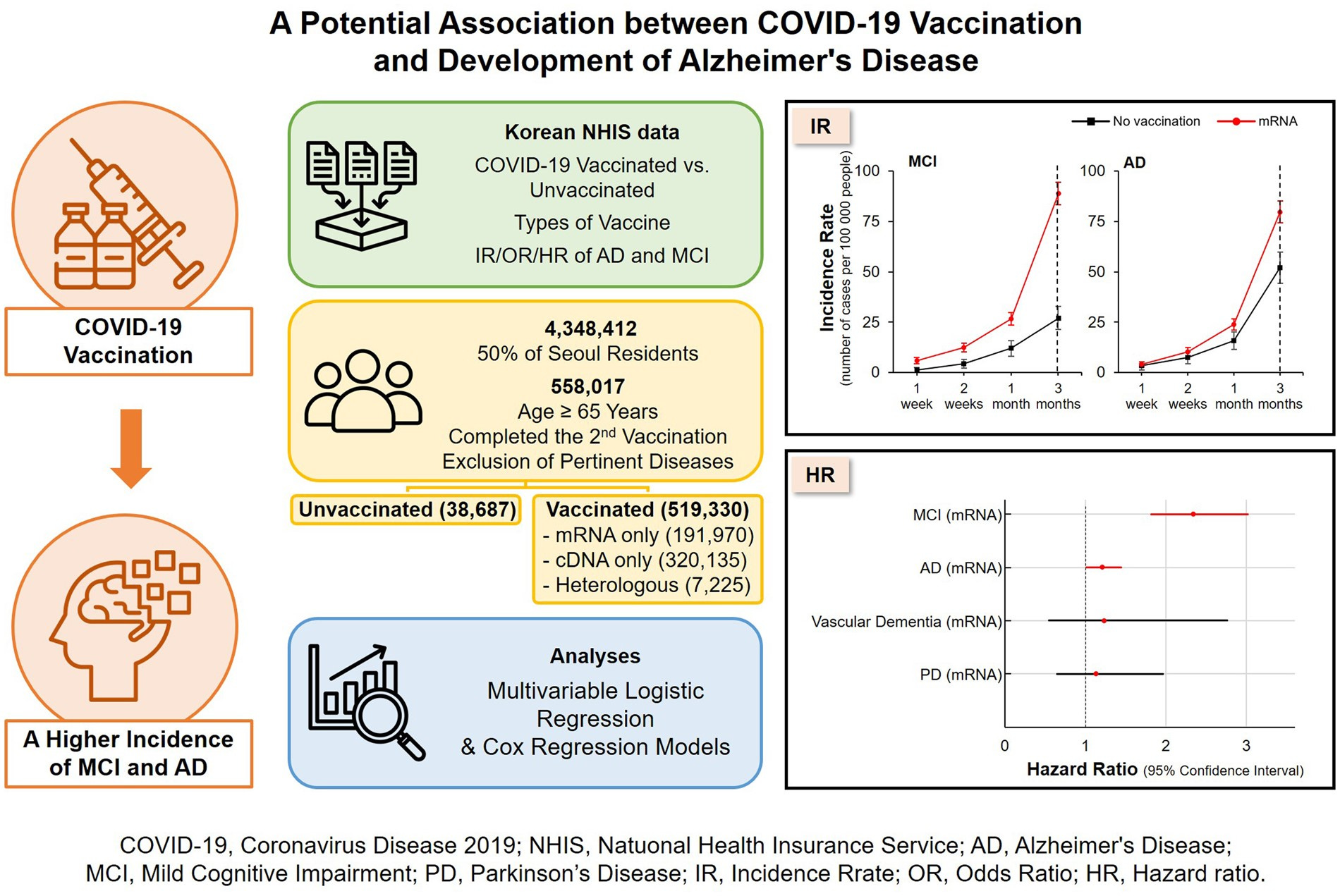 This study investigates the association between COVID-19 vaccination and the onset of AD and its prodromal state, mild cognitive impairment (MCI).