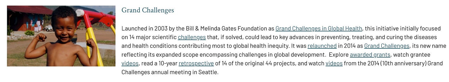 The game has always been to create seemingly innumerable front companies that form a deliberately intricate spider’s web of purposely convoluted eugenics nodes; The Grand Challenges organization is no different, having been created and funded by…you guessed it!: