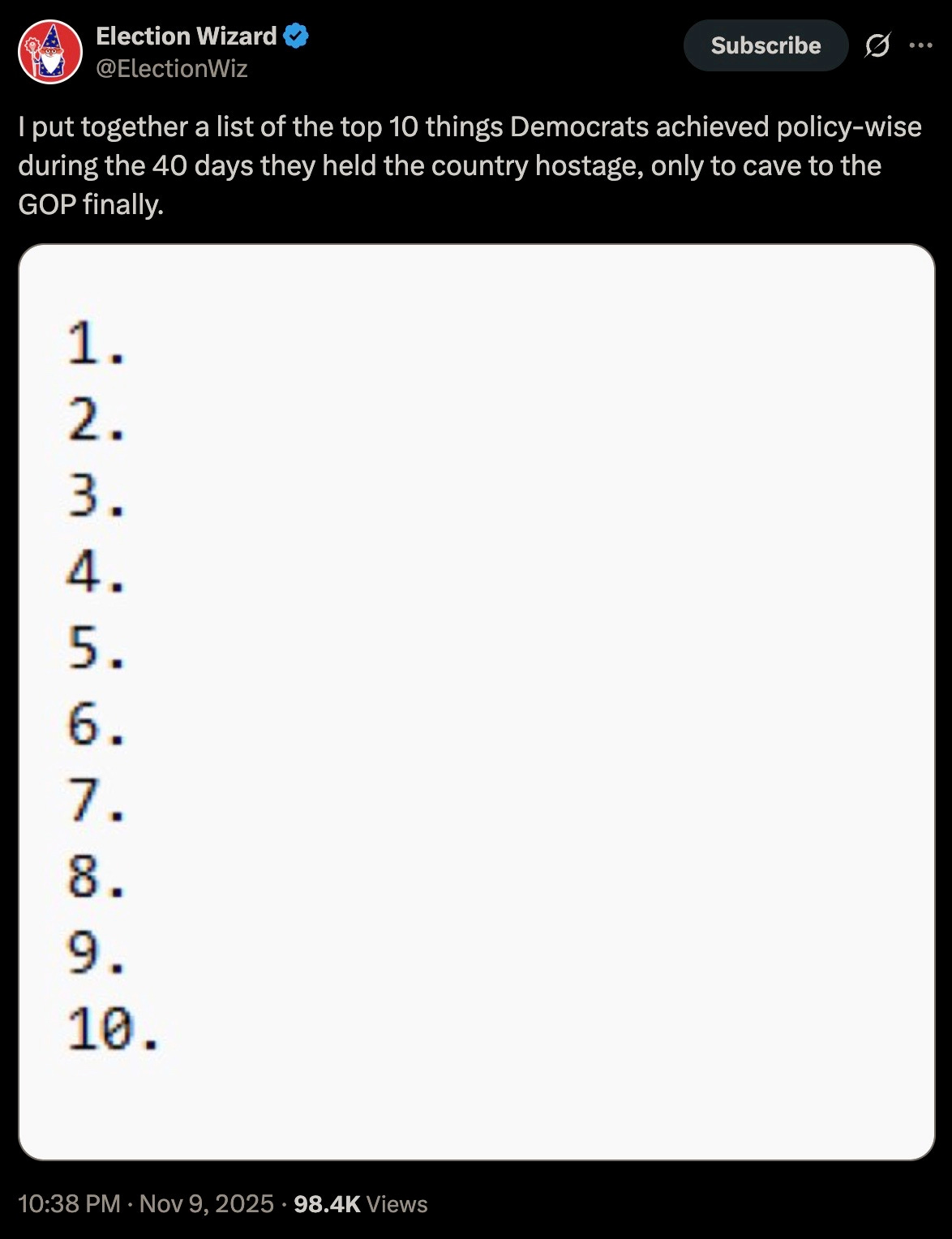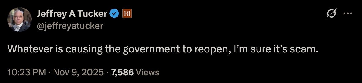 Remember, this is all kabuki theatre, and just the right number of Democrat votes were engineered to reopen a government that was never truly shut down.
