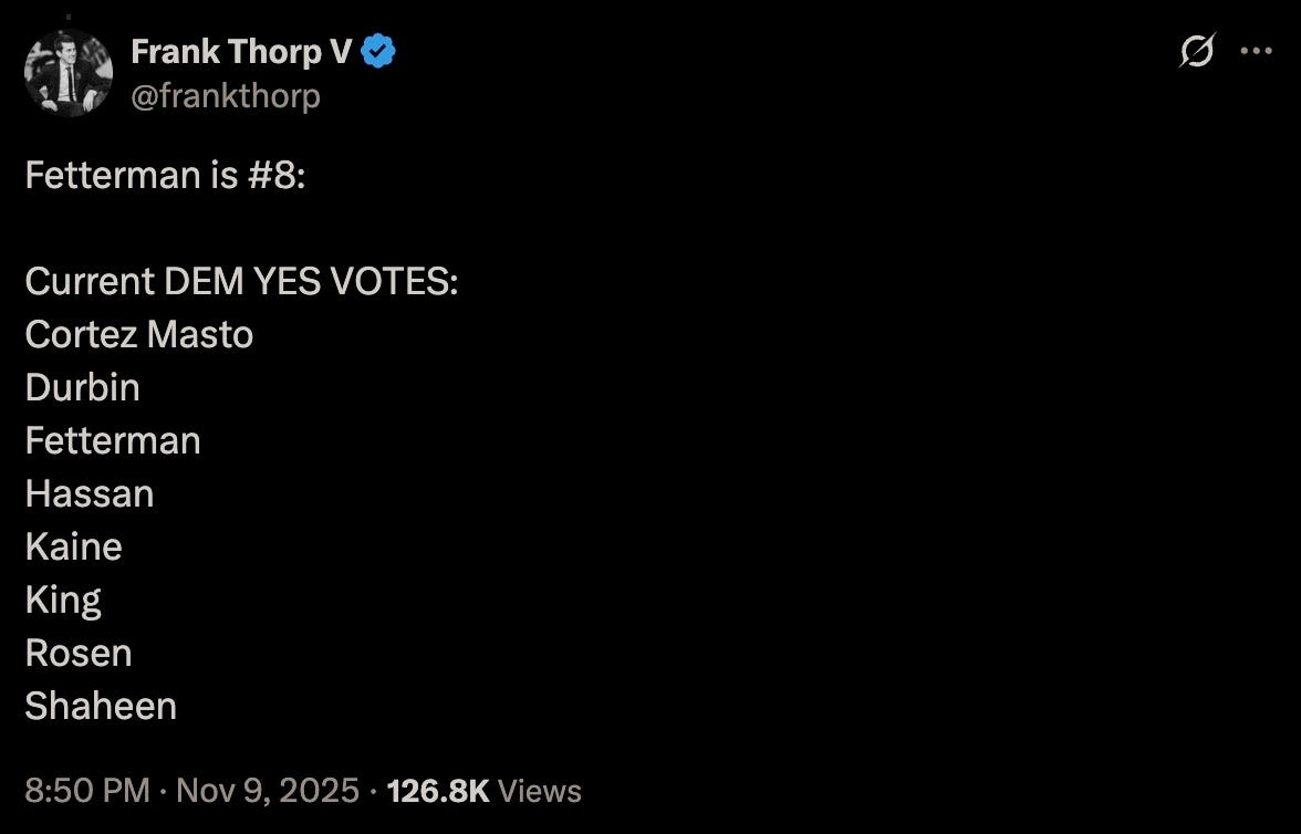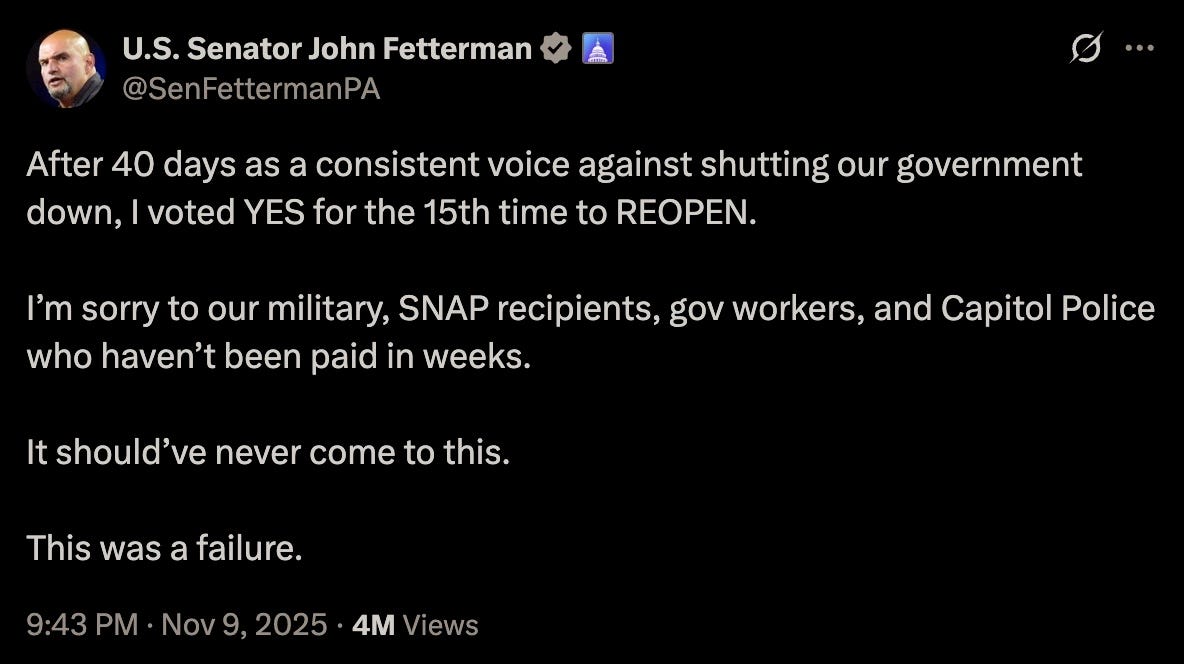 Senator John Fetterman was the most vocal Democrat opposing this shutdown.