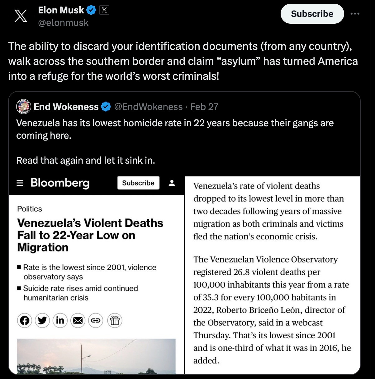Enter PSYOP-MUSK, who was recently activated to aggressively and incessantly opine on “his” X platform about the latest border goings-on: