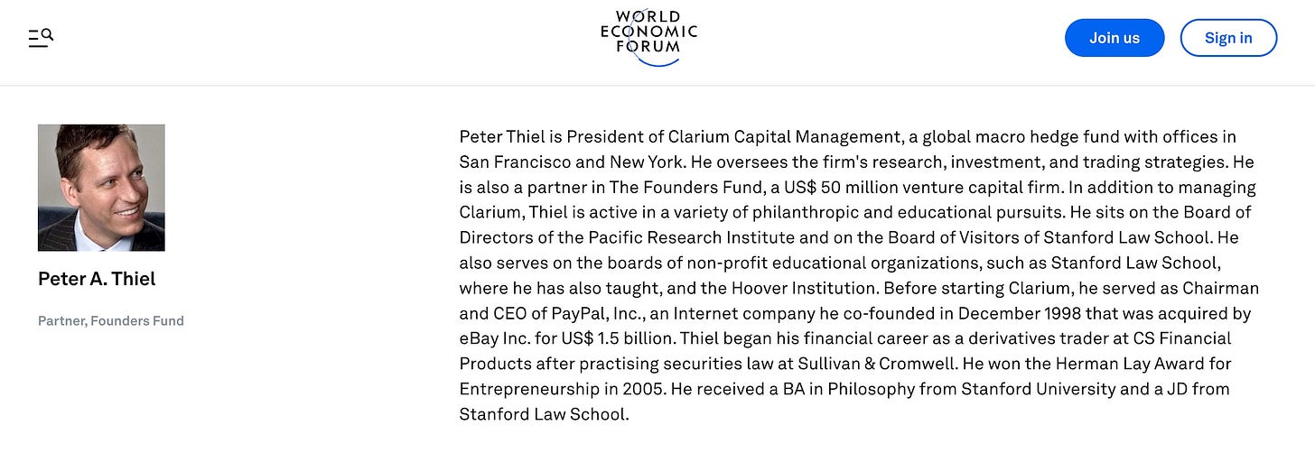 If you are aware of the committee of 300 and its purpose ., Thiel is a "member"! If your aware of Agenda 30, its the endgame scenerio for humanity. so the 15 minute cities is one big zombie housing project! The Deagle population forecast for 2025 is USA to be culled by 233 million people! The club of Rome has mandated by 2030 the earth will have no more than 1 billion inhabitants. The Plandemic failed, as the 70% population on quartely kill shots has failed big time. What is plan B?