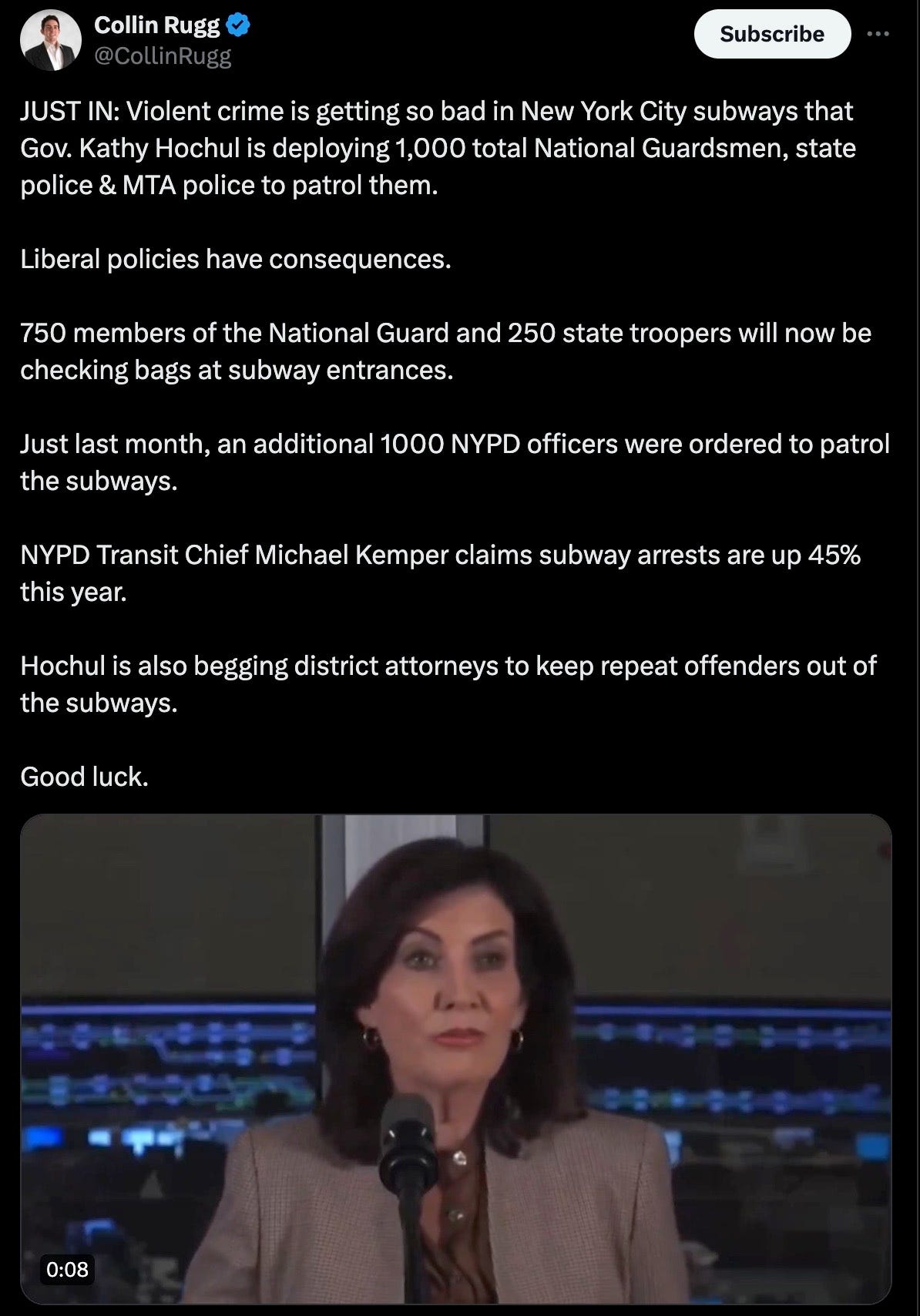 Longtime readers of this Substack are familiar with one such sociopathic “public servant” in Kathy Hochul, New York’s felonious Governor.
