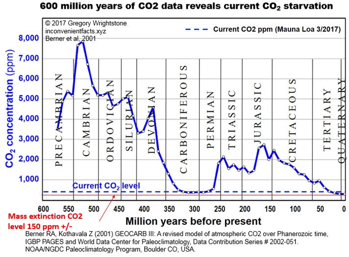 Today’s psychopathic Cult are pushing the junk science “climate change” scam hard and fast, ready to usher in “Green” Passports onto the global population. Meanwhile, hardly anyone has bothered to review the actual science and as such can’t comprehend that our current 421ppm of atmospheric CO2 is essentially critically far too low for optimal life on earth.
