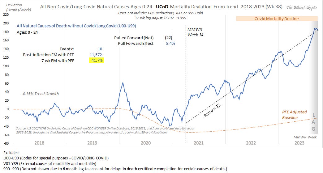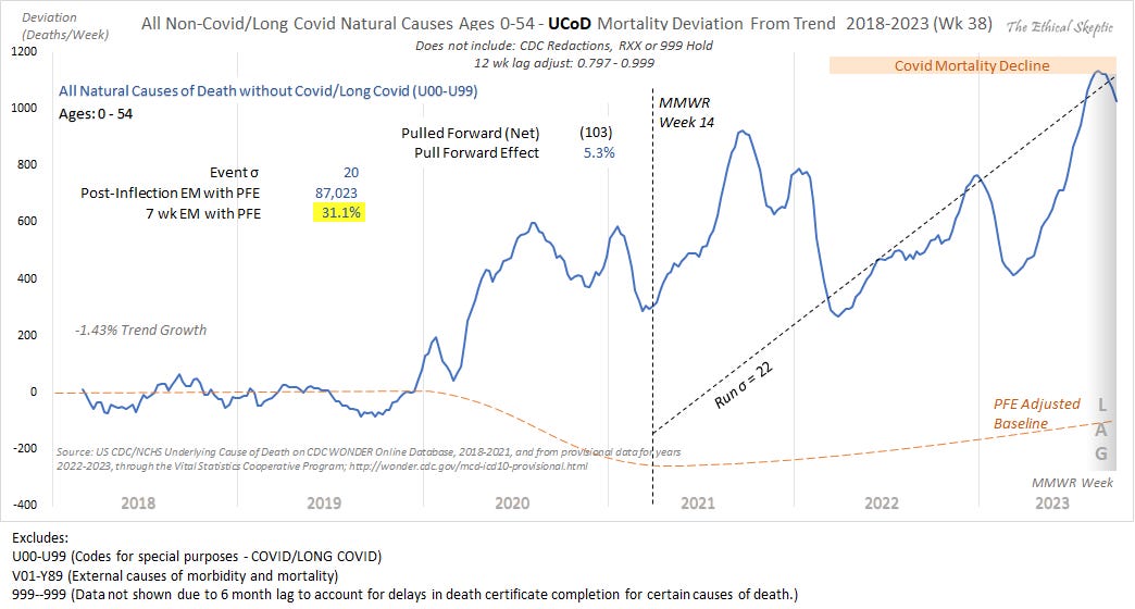 Yesterday this Substack reviewed the latest cardiac mortality data: A few days before that, this Substack reviewed the latest cancer data: Today we tie these terrifying trends together by reviewing the latest data on excess non-PSYOP-19 natural cause mortality: