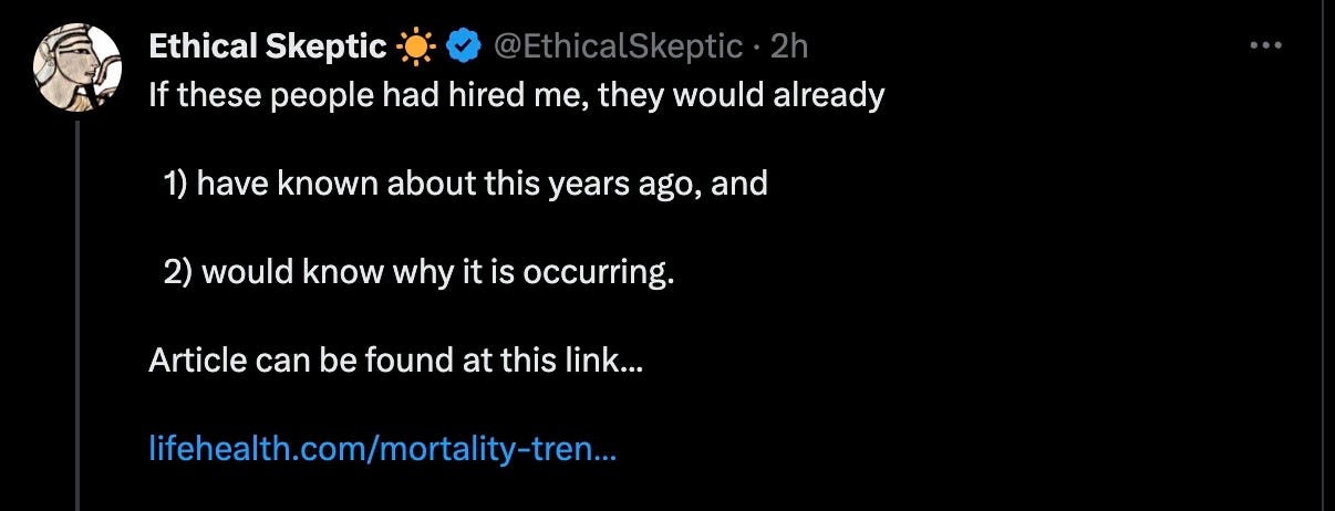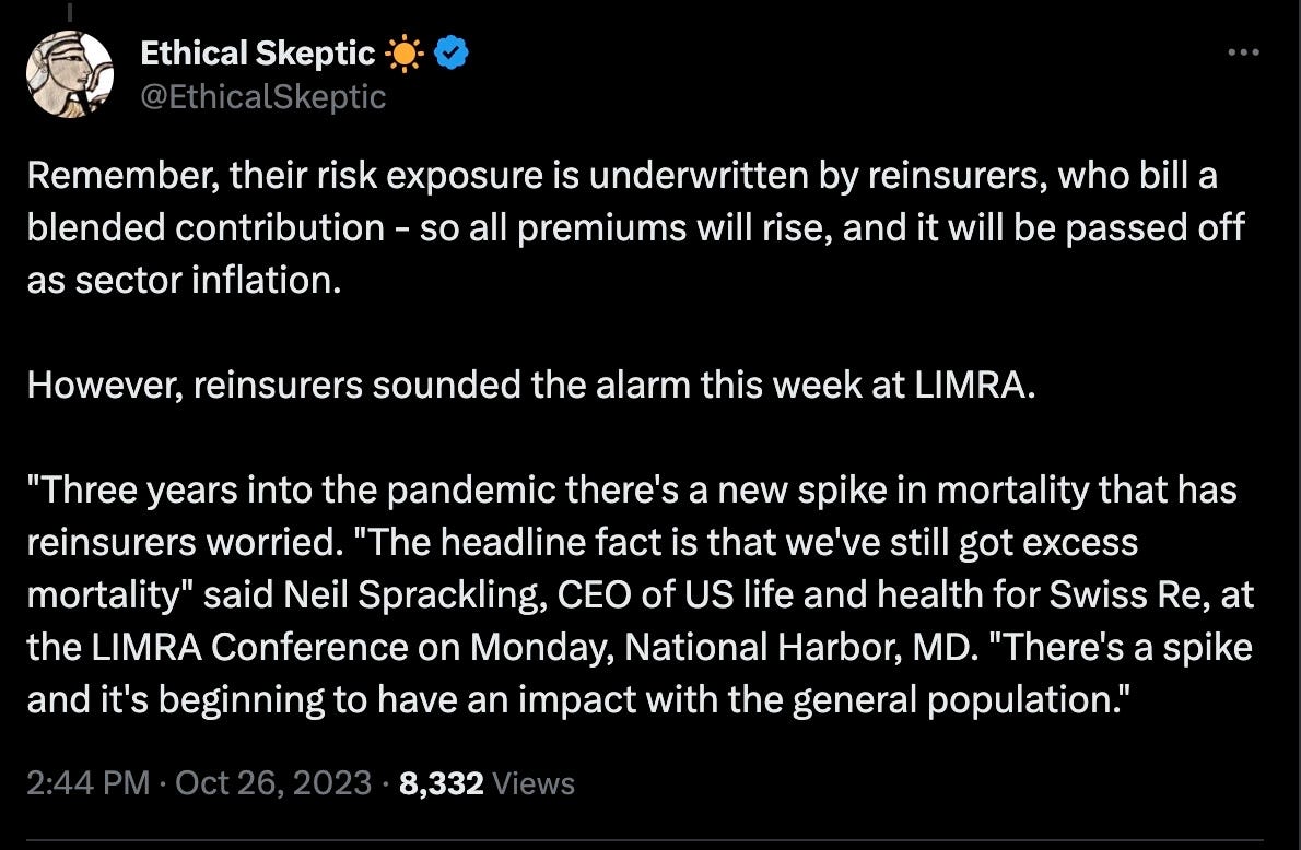 "The mortality trend was so stark that OneAmerica announced deaths in its group life business had risen a full 40% in the 18-64 age group, a trend that began in the second half of 2021 and continued through the remainder."