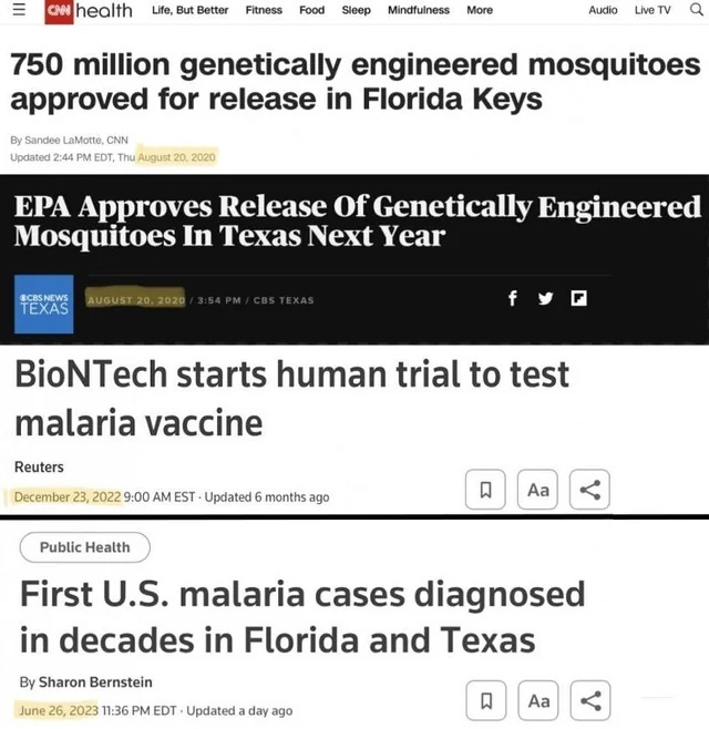 This Substack previously reported on the illicit Bill Gates mosquito eugenics program: And now we have the latest in Statism bioterrorism with the latest mass induced fear campaign involving “malaria:” We know that Bill Gates has been releasing his genetically modified frankenmosquitos in Florida for years now. We may extrapolate that said frankenmosquit…