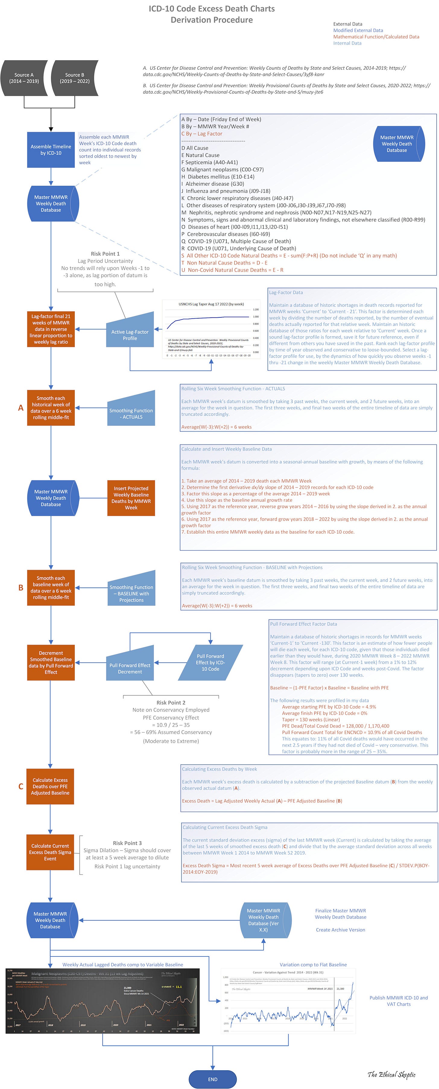 For a detailed data and derivation flow chart, outlining data source, handling, and modification, to the first derivative baseline, its smoothing, series of calculations, and how the entailed risk-points are compensated for – in other words, how the charts in this article are assembled – please click on the flow chart thumbnail icon to the right.